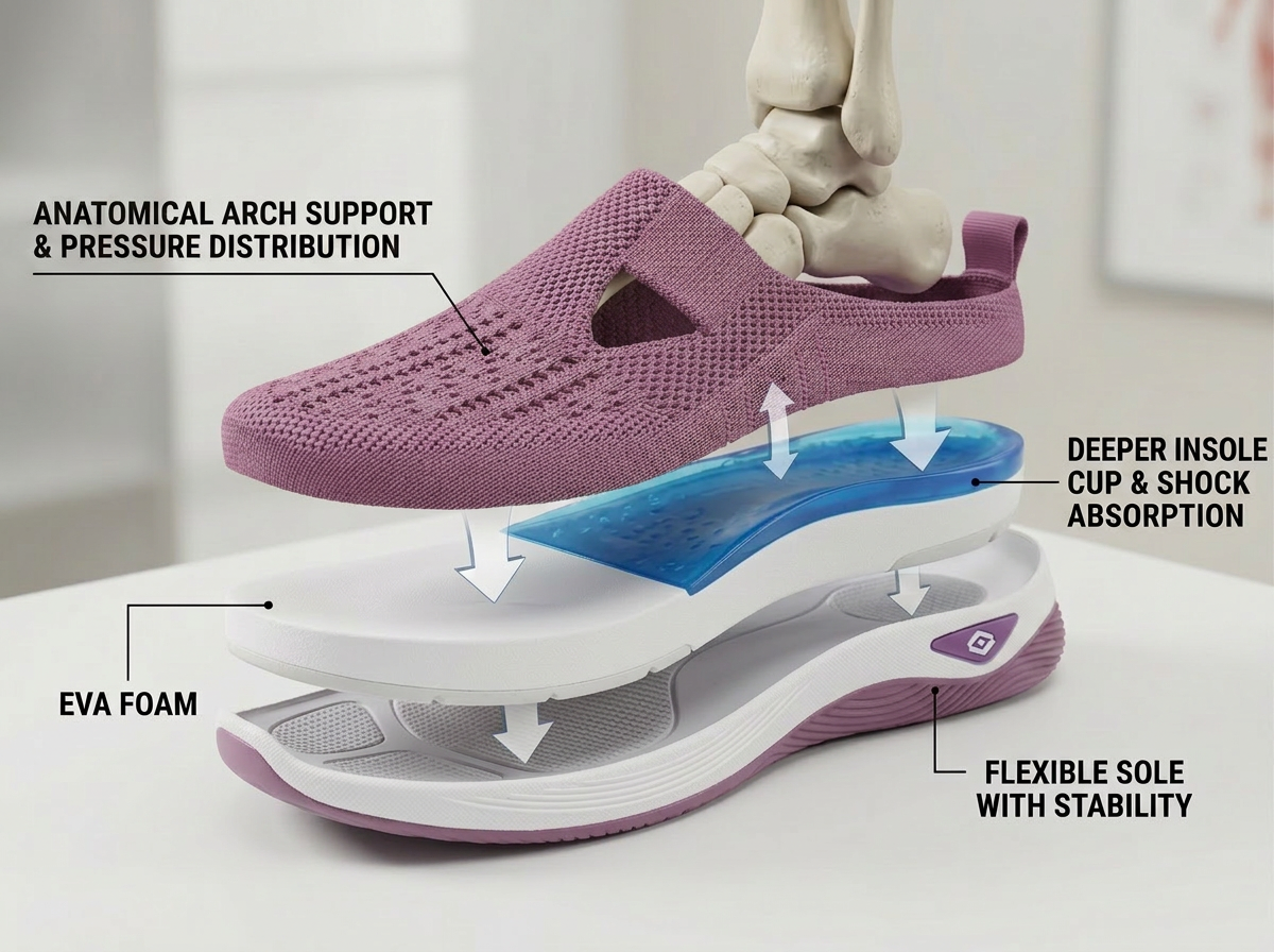 Entworfen von professionellen Podologen und Schuhmachern, korrigieren die orthopädischen Cushionsneaker die Körperhaltung und beseitigen Muskelungleichgewichte, indem sie die schrägen Zehen zurück in ihre ursprüngliche Position bewegen, um die Skelettausrichtung wiederherzustellen.