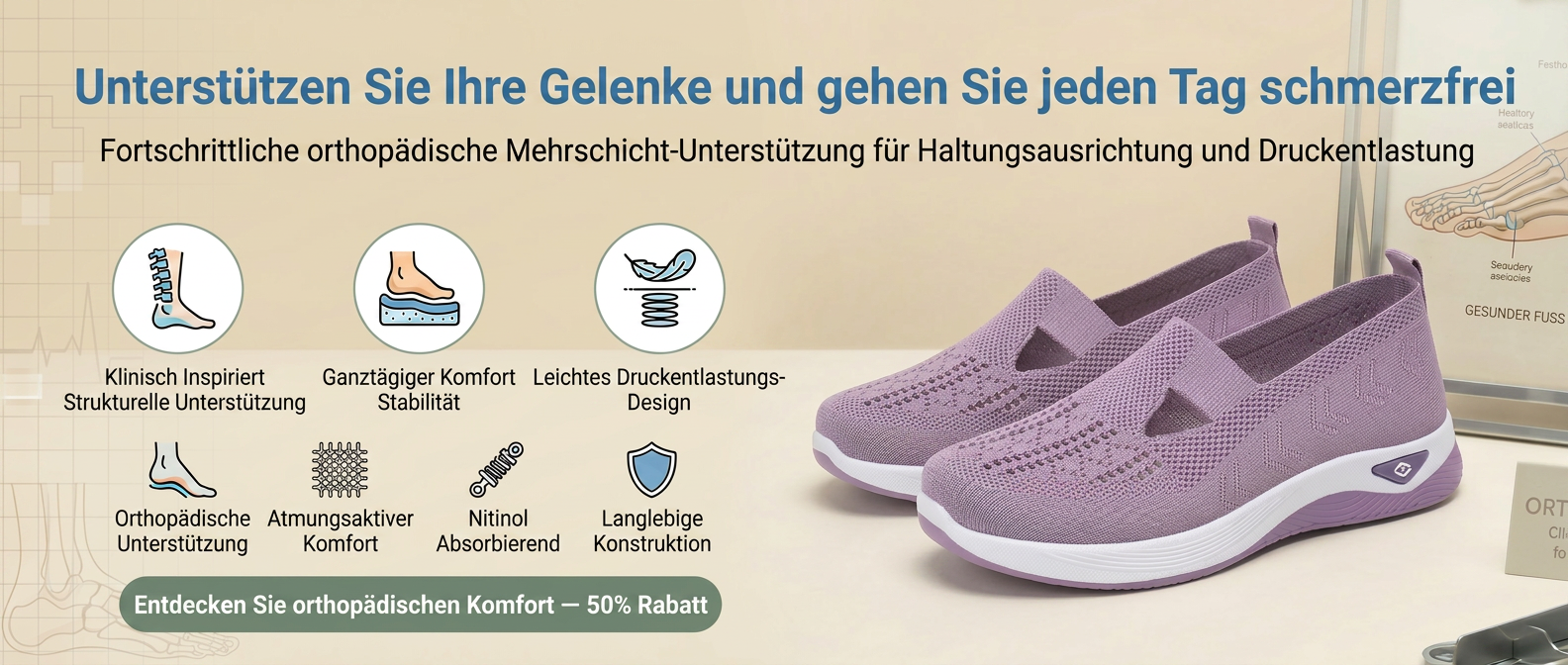 Entworfen von professionellen Podologen und Schuhmachern, korrigieren die orthopädischen Cushionsneaker die Körperhaltung und beseitigen Muskelungleichgewichte, indem sie die schrägen Zehen zurück in ihre ursprüngliche Position bewegen, um die Skelettausrichtung wiederherzustellen.