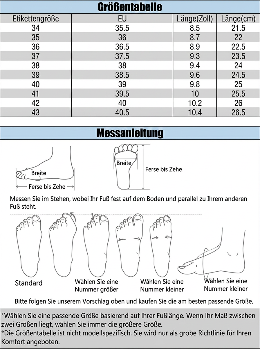 Der breite Zehenbereich ermöglicht es Ihren Zehen, sich natürlich auszubreiten, den Druck zu reduzieren und ausreichend Platz für Ihre Füße zu bieten.